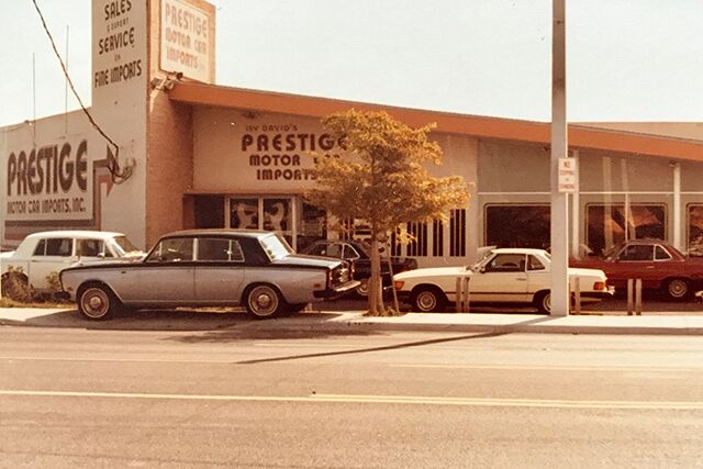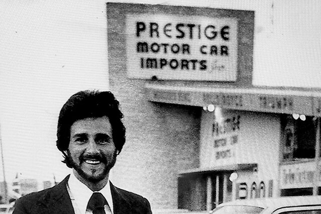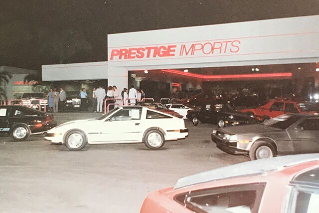 1986, outside the grand opening of the new Prestige Imports Showroom.