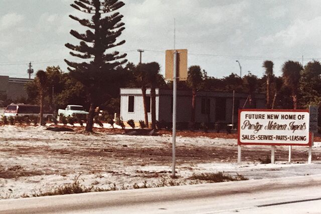 1980, Irv David proudly standing in-front of the original Prestige Imports on West Dixie Highway.
