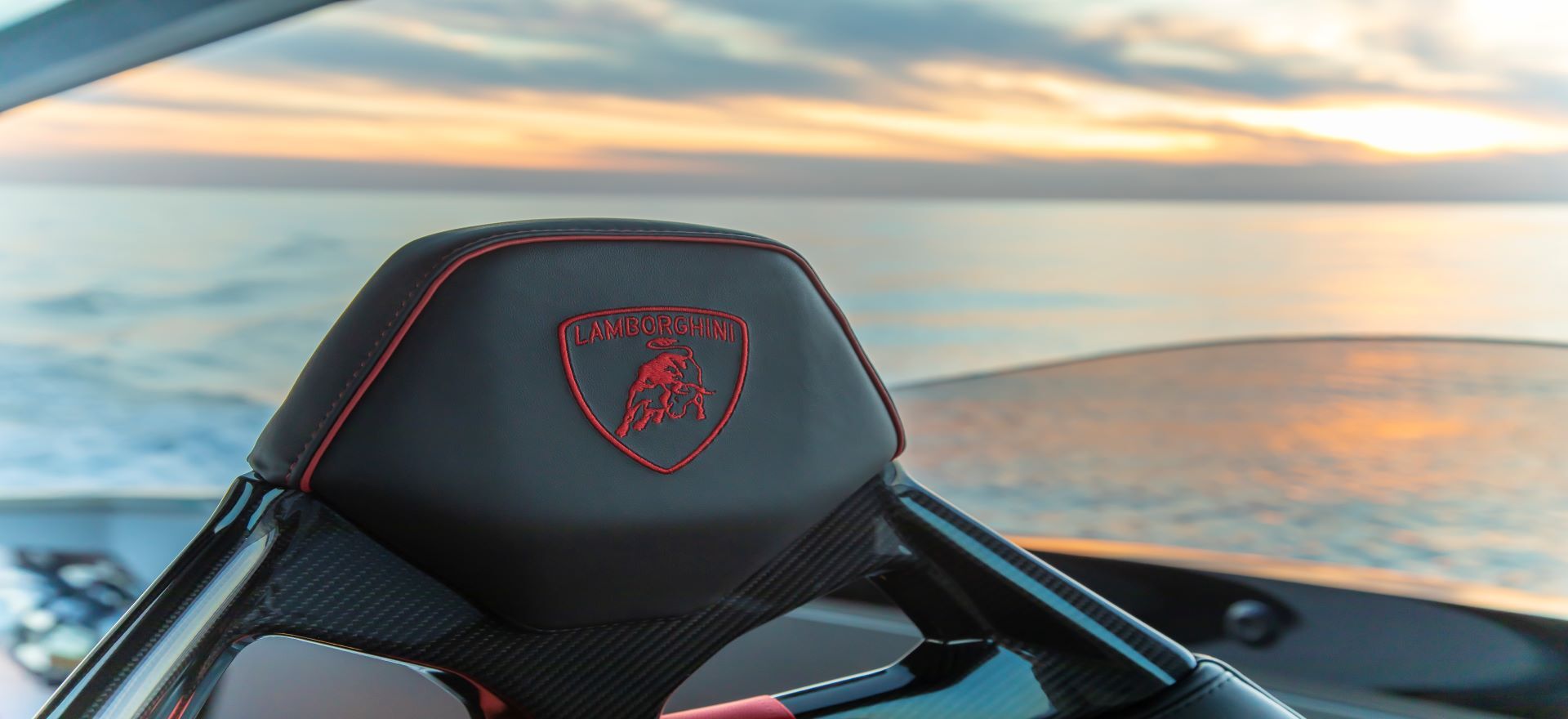 The design of the EXTERIORS is the result of the close collaboration between the two Centro Stiel and has led to the creation of a cutting-edge silhouette, completely out of any typical nautical scheme. The super-performing hull comes from the design of the team of naval engineers specialized in the study of computational fluid dynamics while the hull and superstructure were relaunched in a contemporary form while keeping the lines created by designer Marcello Gandini for the iconic Lamborghini cars Miura and Countach from the ’60s and ’70s.
