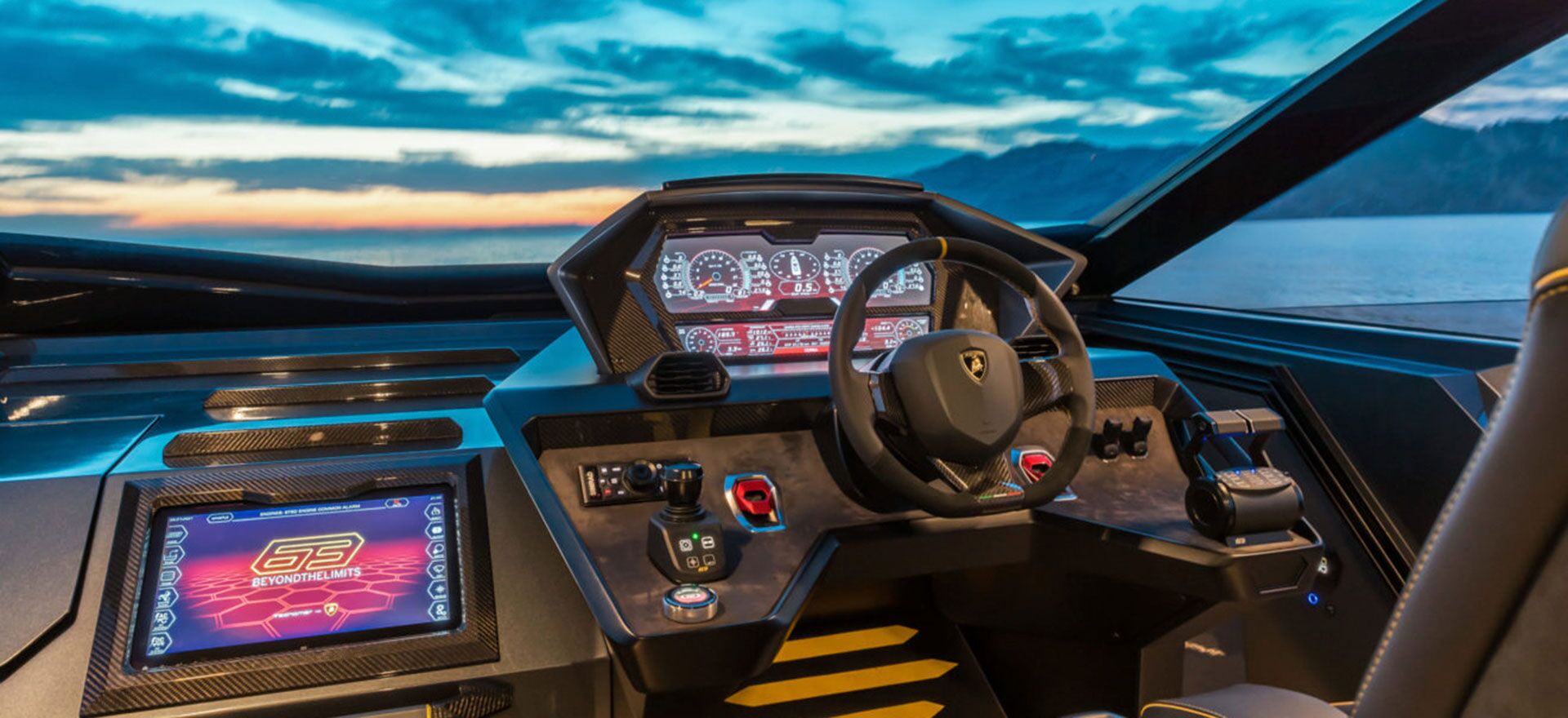 Finally, the unmistakable “start&stop” button (present on the yacht in two units, one per engine) is the same that starts the engine of the Lamborghini Car.